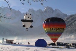 If one thing is for certain, it is that every year in January, the Schlegels and some other model balloonists come to Gosau at the Dachstein, to freeze certain parts of the body at temperatures around 15°C below zero - and, of course, to fly their model balloons at best weather!