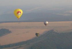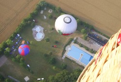der Nähe von Eisenach. 5 Ballone, 7 Tage, 22 Ballonstarts, 25 Grad Wassertemperatur, 35 Teilnehmer und oft über 36 Grad in der Luft - das sind die Zahlen eines Ballonjugendlagers der Superlative! |