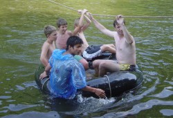 Mit zwei Schlauchbooten und etlichen Traktorreifen wurde die Flussfahrt auf der Werra