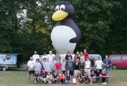 Gruppenbild mit Pinguin: Hier seht ihr alle Teilnehmer und Betreuer des Sommerjugend-lagers
