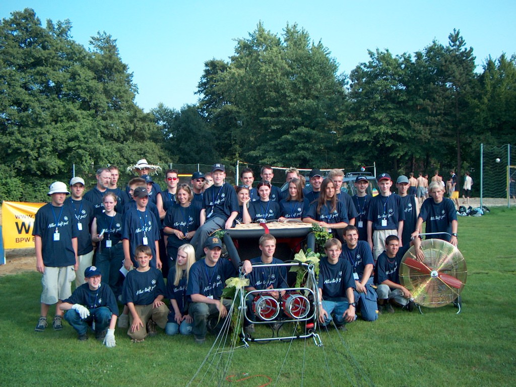 Camp" gekommen. Links seht ihr alle Teilnehmer um den Korb des neuen Jugendballons