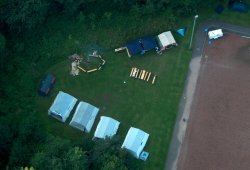 Unser Lagerplatz aus der Luft. Diese vier Mannschaftszelte, zwei Küchenzelte und ein Vorratszelt sollten für die nächsten sieben Tage unsere Unterkunft sein.