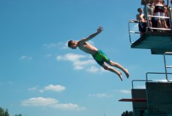 Der Sprungturm im Freibad bot die Möglichkeit, auch mal ohne Ballon abzuheben ;-)